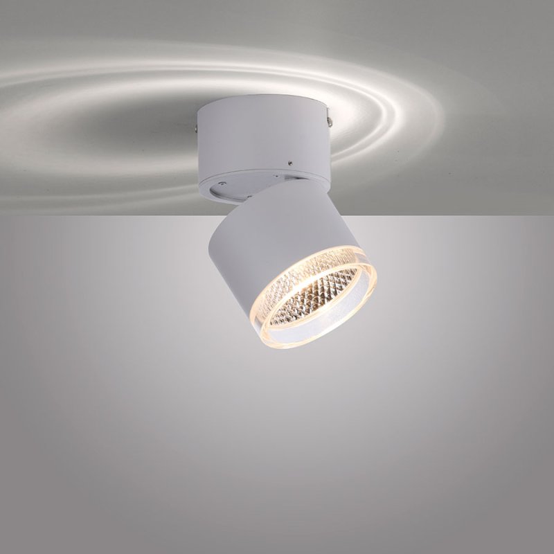 LED Спот лампа за вграждане и повърхностен монтаж PURE Nola е модерно и гъвкаво осветително тяло,с включен прозрачен акрилен пръстен, който може допълнително да се постави за функционалност и стил. С алуминиева основа в елегантен бял цвят и изчистена кръгла форма, този спот е идеално решение за осветление във всекидневна, коридор, спалня или офис.