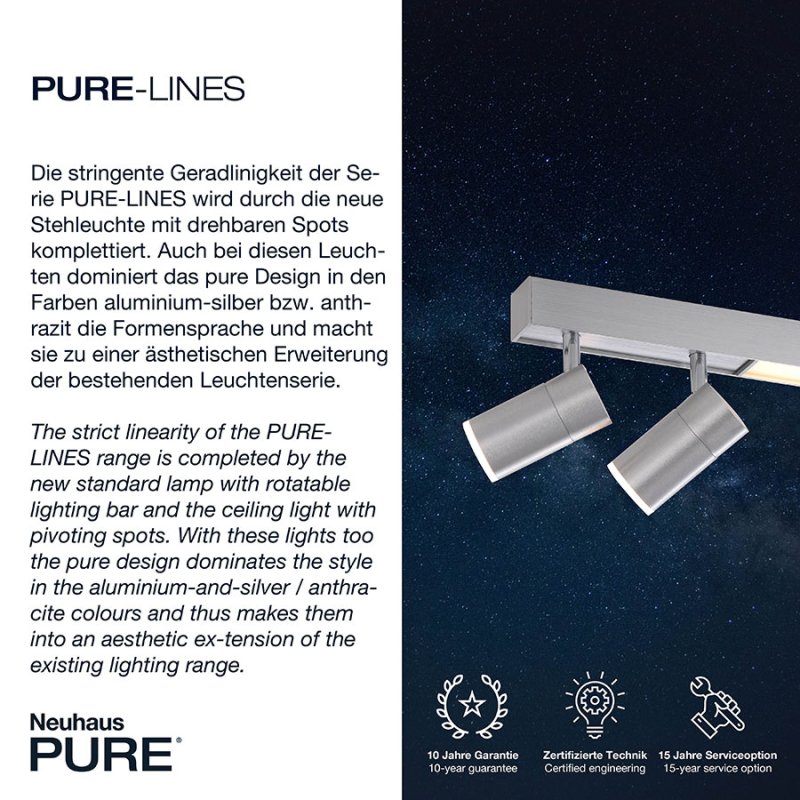 LED Спот лампа PURE Lines Spot е модерно осветително тяло, което съчетава елегантен дизайн и изключителна функционалност. С алуминиева основа в цвят сребро , линейна форма и въртящи се спотове, този плафон е идеален избор за осветление във всекидневна, кухня, коридор или офис.