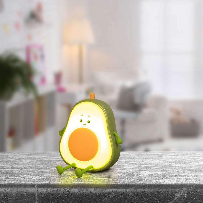 RGB детска силиконова нощна лампа Bobi, изработена от мек силикон в свеж зелен цвят с очарователен дизайн на авокадо. Осветителното тяло с мило усмихнато личице и симпатични ръчички и крачета създава топло и приятелско усещане, перфектно за детската стая. Лампата е с RGB функция, позволяваща ви да избирате между множество различни цветове, за да създадете уникално настроение според нуждите и предпочитанията на вашето дете.