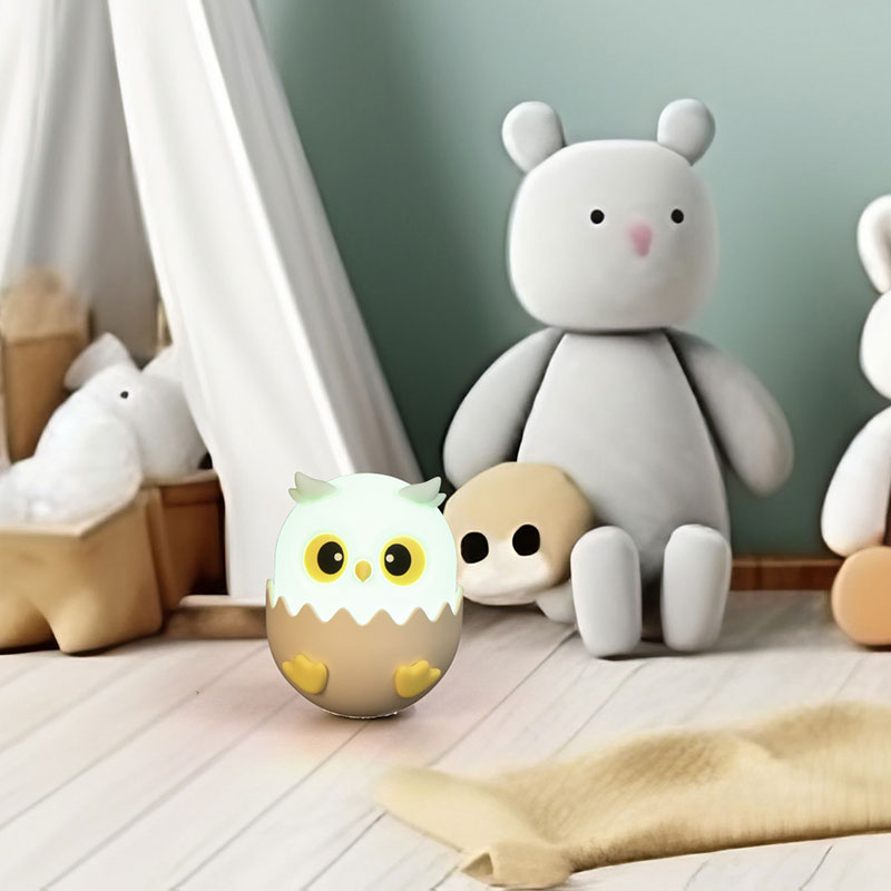 Сладкият дизайн на совата, излюпваща се от яйце, мекият силиконов материал и топлата светлина с цветна температура от 3000K създават магична атмосфера за приказни сънища. Със светлинен поток от 38 lm, лампата осигурява идеалното ниво на осветление, което не е нито твърде ярко, нито твърде слабо за детските очи. Осветителното тяло е перфектният нощен приятел за вашето дете, създаващ усещане за сигурност и спокойствие през цялата нощ. Идеална за бебешка стая, детска градина или като нежен акцент в стаята на по-големите деца, тази очарователна лампа ще носи радост и уют в продължение на години.
