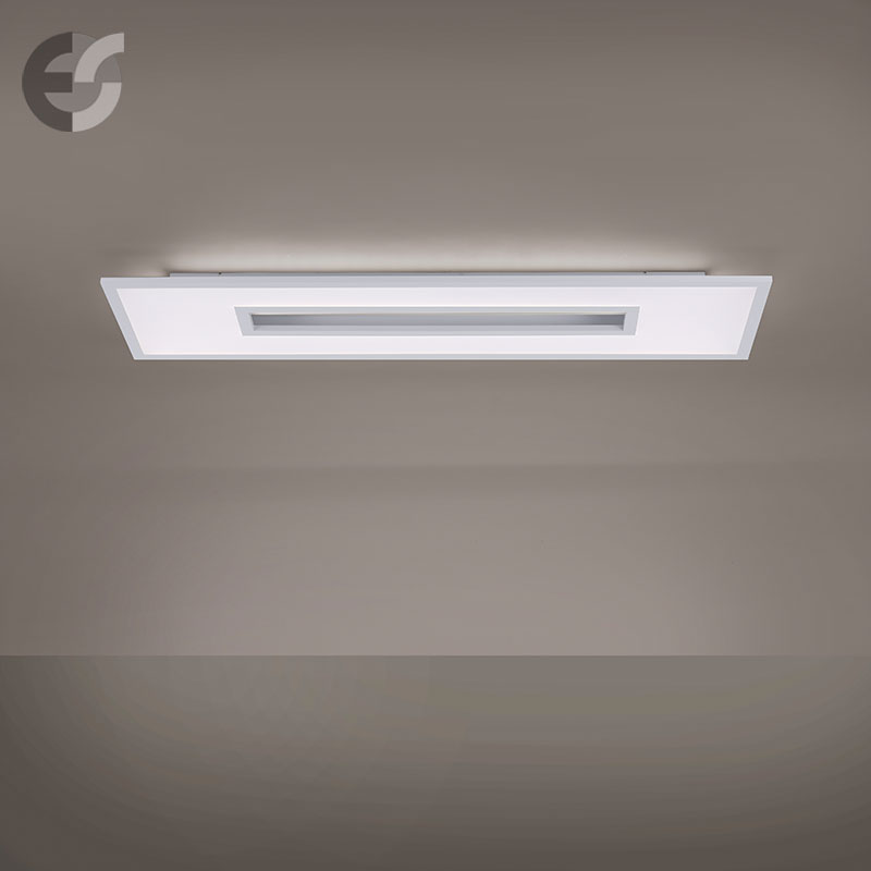 Осветително тяло - LED Плафон RECESS, изработен от метал и разсейвател в бяло. Плафонът е с включено дистанционно, чрез което можете да лесно и удобно да променяте цветната температура на светлината от топло бяла към неутрална (дневна), да променяте цвета - червен, зелен, син и техните производни цветове, както и да включвате и изключвате лампата. Осветителното тяло е подходящо за осветление за всекидневна, осветление за спалня, осветление за коридор, осветление за офис. Производител Leuchten Direkt, Германия.